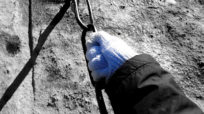 山道很險,大部分的路都要貼著山壁慢慢走,並要小心的抓牢鐵鎖。
