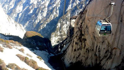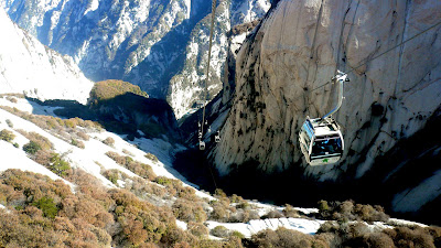 纜車在7分鐘內就將遊客送上北峰(徒步要2.5~3小時),所以非常陡峭,爬行速度也快,