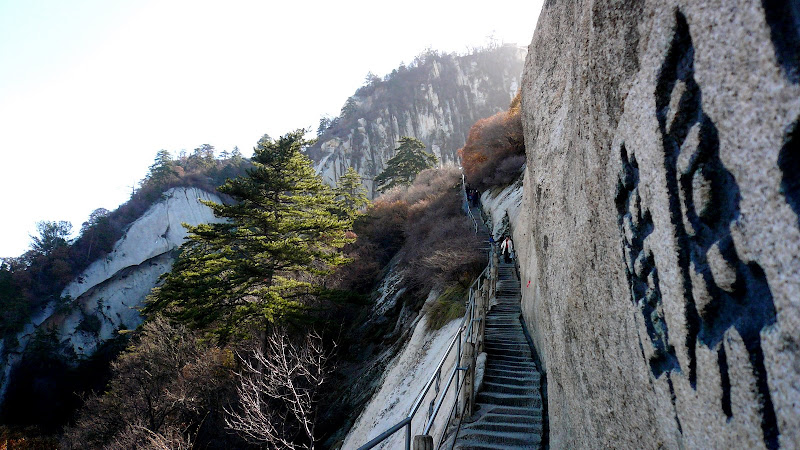 邊爬邊驚嘆華山地形的雄偉險峻、也邊為懸空疾行而發毛,