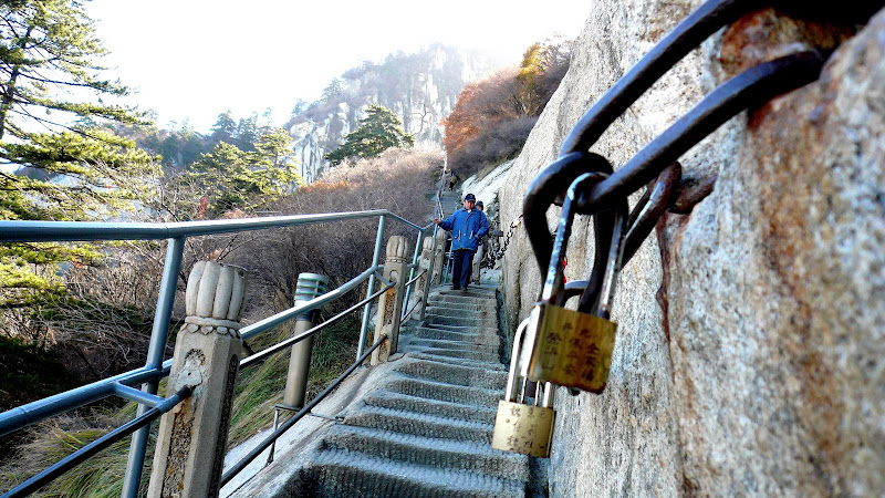 我聽導遊說,唐朝時的蒼龍嶺,兩旁是沒有鐵鎖欄杆的@@
